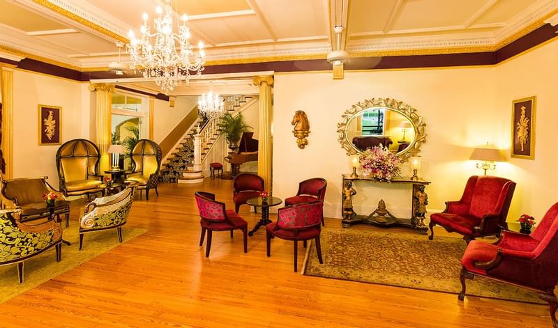 As you enter the lobby, you are transported back to a grander era in a space adorned with chandeliers, gold trimmings, stained wooden flooring, canopy chairs, gilded wall mirrors and lush Baroque drapes. A few steps further, you come to our master staircase with all its classical trimmings. Beside that is the grand piano that echoes throughout the halls when our resident pianist is on hand.